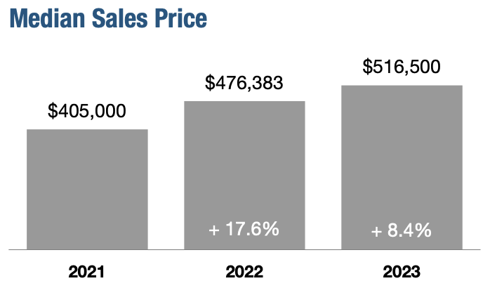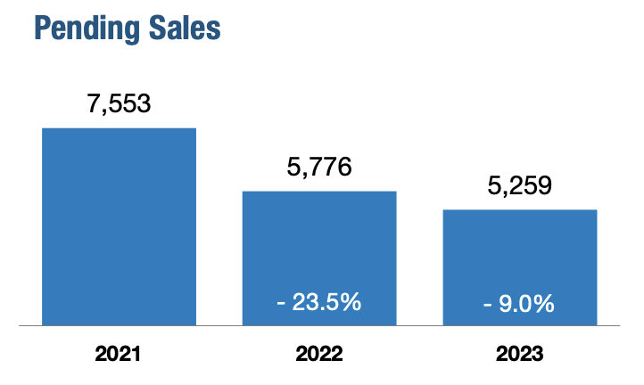 Pending sales decreased 9.0 percent, finishing 2023 at 5,259. Closed sales were down 7.5 percent to end the year at 5,405.