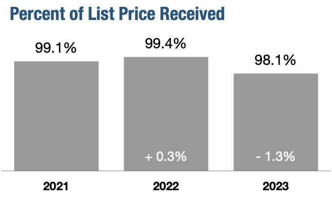 Sellers received, on average, 98.1 percent of their original list price at sale, a year-over-year decrease of 1.3 percent.
